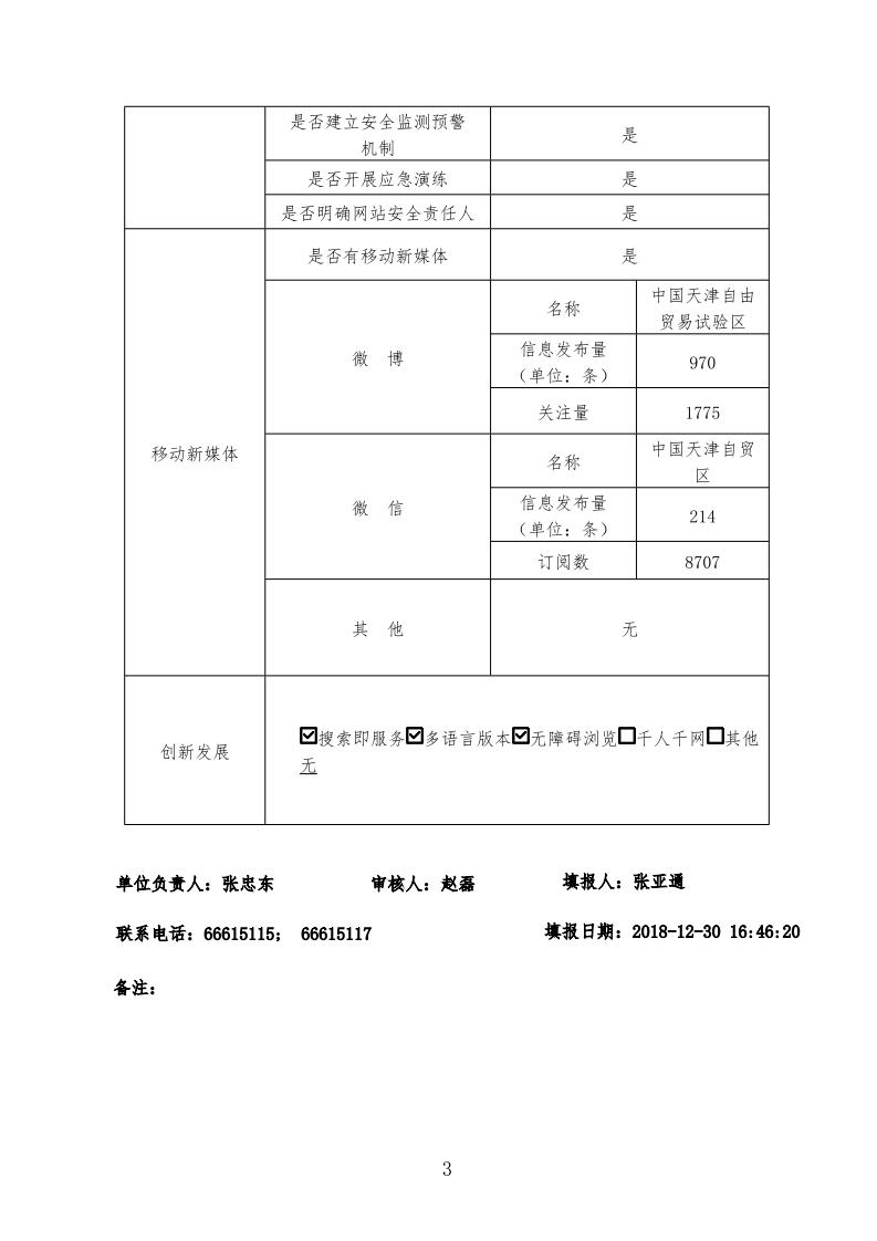 天津自貿試驗區網站工作年度報表(2018年度)