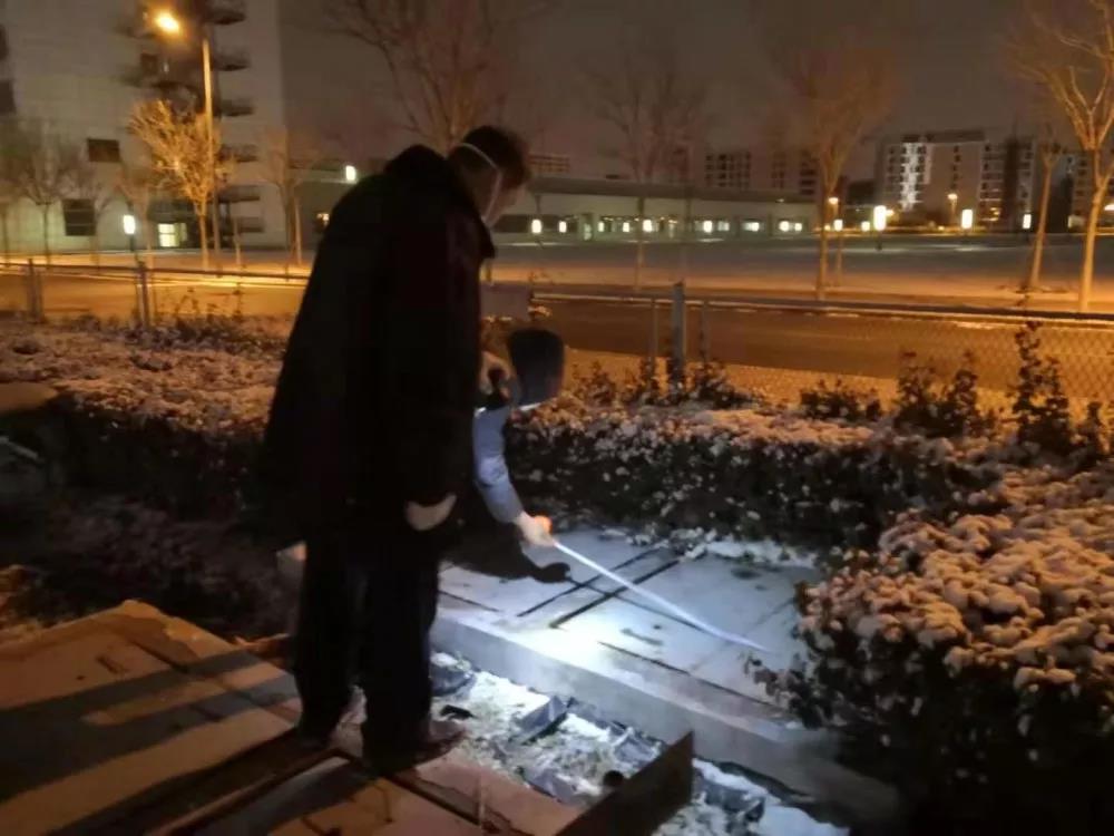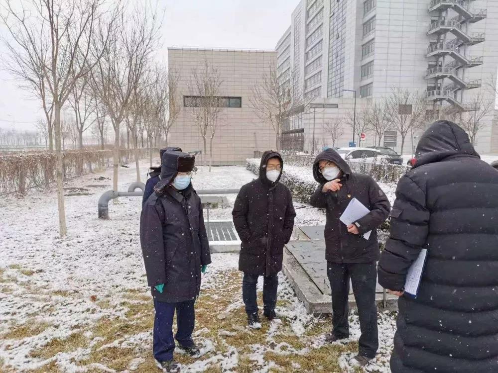 冬季里的污水處理設施改造,按正常施工至少需要10天,但是救治定點醫院的改造刻不容緩。2月8日9時,保稅區城環局收到任務后迅速出擊,連夜調閱空港醫院污水處理站設計圖紙,冒雪聯合天津市環科院專家現場踏勘測量,在安全第一、質量第一的前提下,力求以最快的速度完成施工任務。