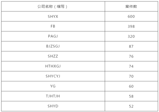1月份融資租賃全行業案件數前十的企業名單
