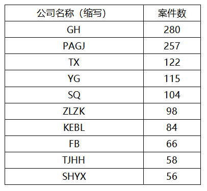 4月份融資租賃全行業(yè)案件數(shù)前十的企業(yè)名單