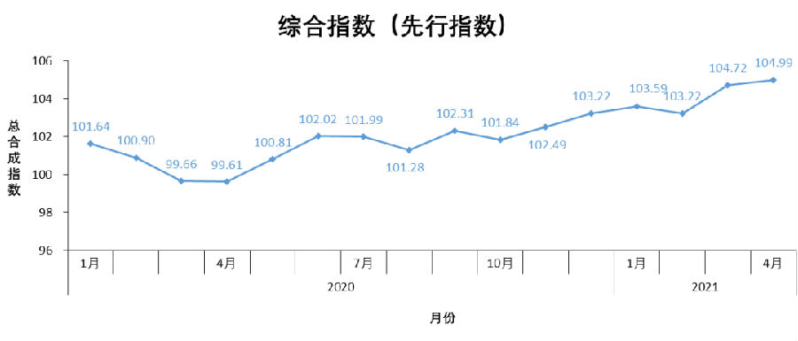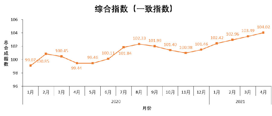 4、4月份運營能力一致指數(shù)2021年4月份的值為104.01點,較上月基本持平。