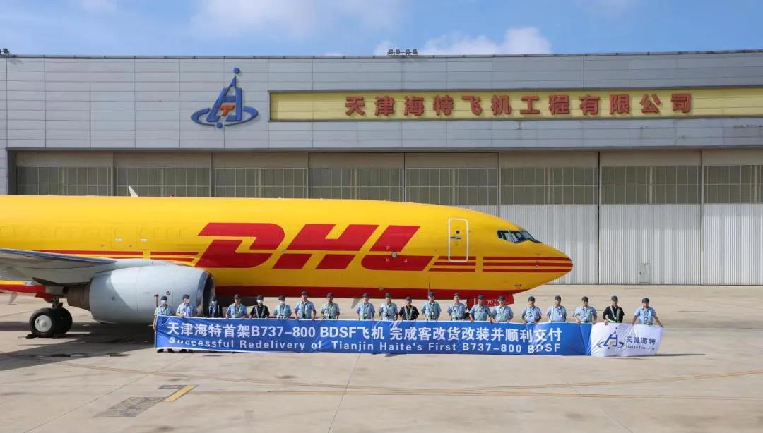 2016年6月,海特集團與以色列IAI公司在成都正式簽署B(yǎng)737-NG飛機客改貨STC開發(fā)協(xié)議,雙方合作共同開發(fā)B737-NG飛機客改貨STC業(yè)務并共享知識產權。2018年,天津海特啟動了中國第一架B737-700BDSF客改貨飛機的改裝項目,目前已完成該型機客改貨飛機4架,其中第三架交付天津貨運航空有限公司,是中國首架境內運營的該型號客改貨飛機。