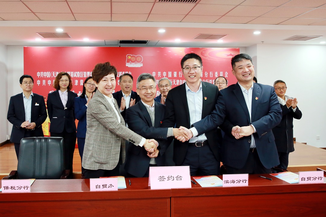 在與會成員的共同見證下,天津自貿試驗區管委會辦公室分別與中國銀行天津濱海分行、保稅分行、自貿試驗區分行簽署《黨建共建協議書》和《支持重點領域業務發展合作方案》,就今后重點合作領域及近期擬開展的工作達成共識。