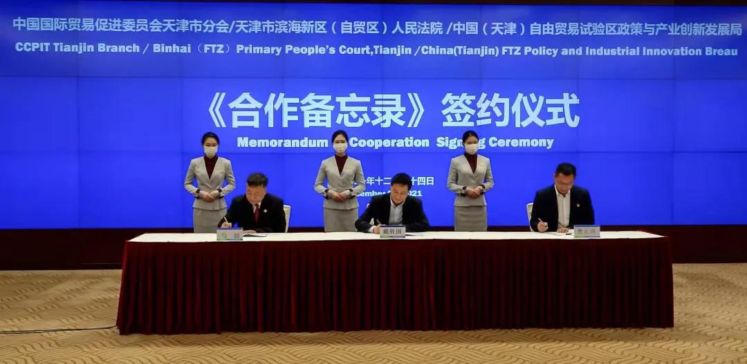 12月24日上午,天津市貿促會、天津自貿法院、自貿區創新發展局共同簽訂《合作備忘錄》,標志著天津自貿區全面融入“一帶一路”建設和京津冀一體化進程,加速構建全領域全鏈條“調、裁、審”一體化法治平臺,打造市場化法治化國際化營商環境取得新進展。