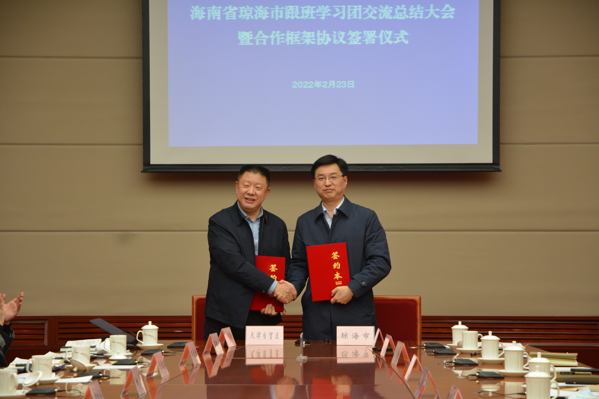 2月23日,中國(天津)自由貿(mào)易試驗區(qū)(簡稱:天津自貿(mào)試驗區(qū))與海南省瓊海市交流總結(jié)大會暨合作框架協(xié)議簽署儀式在濱海新區(qū)舉行。會議對海南省瓊海跟班學(xué)習(xí)團(tuán)交流成果進(jìn)行總結(jié),并就推動雙方深入合作達(dá)成共識。