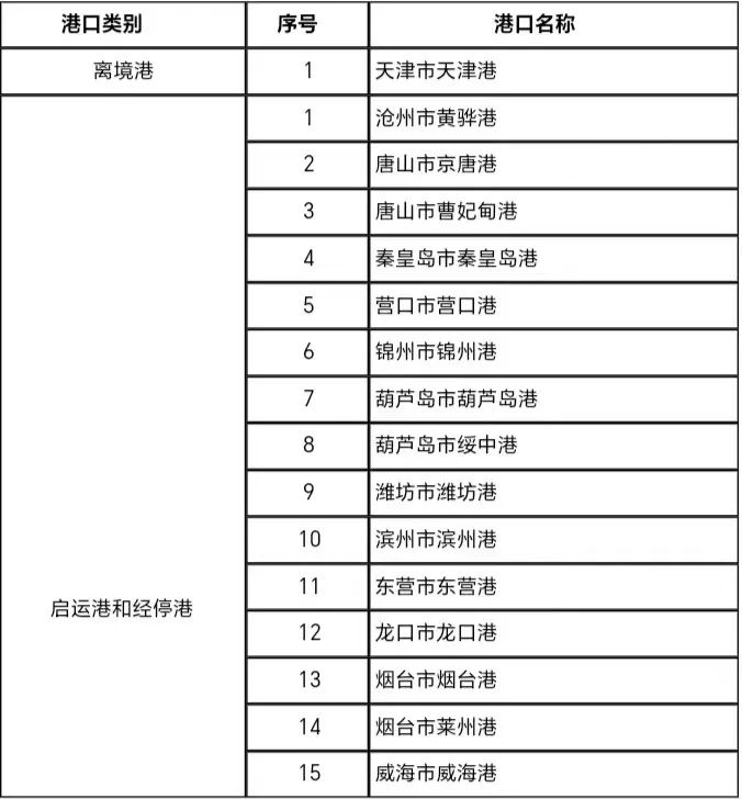 此次獲批作為天津港配套啟運港的有滄州市黃驊港、唐山市京唐港、唐山市曹妃甸港、秦皇島市秦皇島港、營口市營口港、錦州市錦州港、葫蘆島市葫蘆島港、葫蘆島市綏中港、濰坊市濰坊港、濱州市濱州港、東營市東營港、龍口市龍口港、煙臺市煙臺港、煙臺市萊州港、威海市威海港,涵蓋了河北、遼寧、山東三省的15個港口。