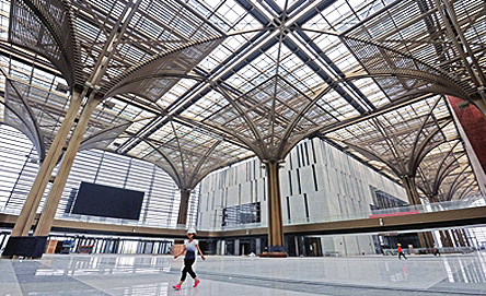 文化長廊是濱海文化中心最具特色的所在,文化長廊寬25米,高達36.5米,建筑面積約為3.5萬平方米,由28個傘狀結構組合而成,堪稱整個文化中心的“魂”。整條文化長廊宛若一條絲帶,將五座風格迥異的文化場館進行有機串聯。在喧囂浮華的塵世中,漫步于此,享受片刻久違的寧靜與平和。