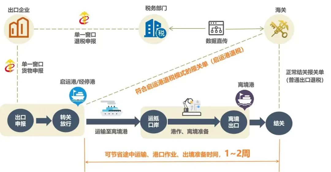 該政策是出口退稅程序的一項創新改革措施。一般情況下,出口企業需將貨物運到出口離境港口并辦理結關手續后才能向稅務部門申請退稅。實行啟運港退稅政策后,對符合條件的貨物自啟運港運出后即視同出口,企業可向稅務部門申請辦理退稅手續,較大幅度節省貨物從啟運港至離境港的途中運輸時間,以及在中轉港換裝國際船舶、離境港靠港、辦理離境手續等時間,有利于出口企業提前辦理退稅業務,提高資金周轉效率。