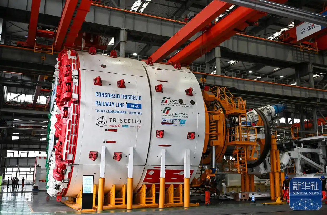 ↑ 這是6月18日在天津自由貿(mào)易試驗區(qū)天津港東疆片區(qū)的中鐵工程裝備集團(天津)有限公司拍攝的即將出口意大利的盾構(gòu)機。