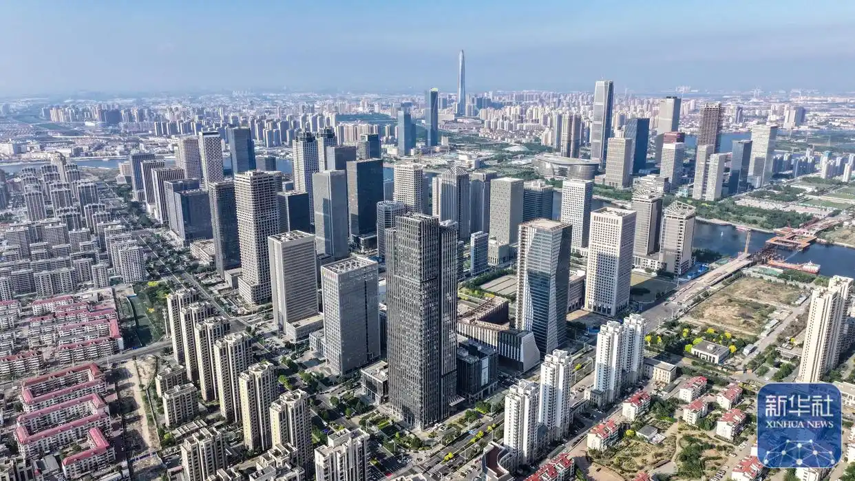 ↑ 這是5月14日拍攝的天津自由貿(mào)易試驗區(qū)中心商務(wù)片區(qū)的樓宇(無人機照片)。