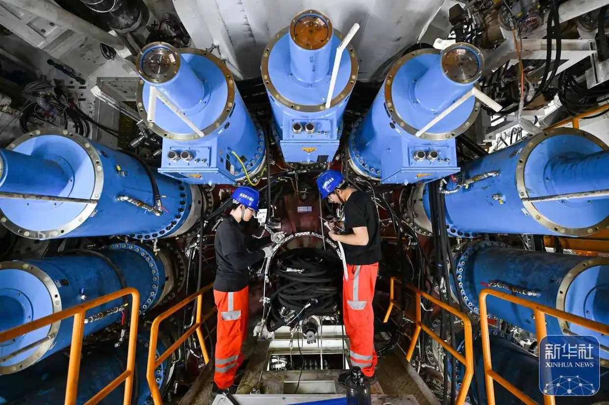 ↑ 6月18日,在天津自由貿(mào)易試驗區(qū)天津港東疆片區(qū)的中鐵工程裝備集團(天津)有限公司,組裝人員在即將出口意大利的盾構(gòu)機內(nèi)作業(yè)。