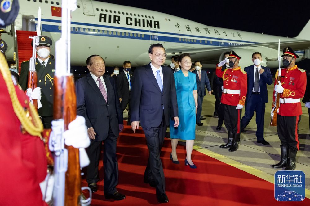 新華社金邊11月8日電(記者吳長偉 鄭明達)當地時間11月8日晚,應柬埔寨王國首相洪森邀請,國務院總理李克強乘專機抵達金邊國際機場,出席東亞合作領導人系列會議并對柬埔寨進行正式訪問。李克強總理夫人程虹、國務委員兼國務院秘書長肖捷等陪同人員同機抵達。