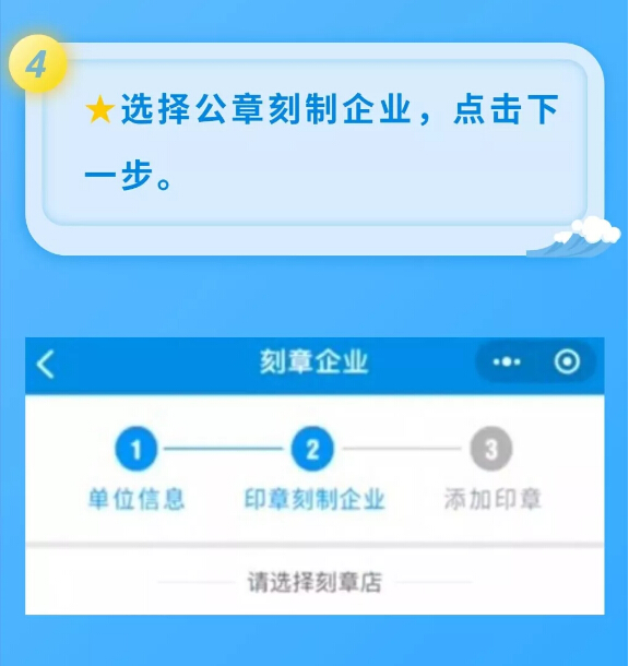 新開辦企業(yè)憑借法定代表人身份證號(或電子營業(yè)執(zhí)照出示標(biāo)識)和電話號碼,通過“天津印章刻制”微信小程序,即可在線選擇公章制作單位和需要刻制的公章,無需提交其他備案材料。