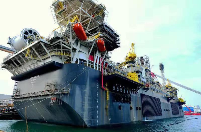 2015年5月,海油工程承攬了巴西國家石油公司P67和P70兩艘FPSO“姊妹船”的后續詳細設計、采辦、部分模塊建造、運輸以及整船的集成、調試、拖航、交付等工作。2018年5月,P67在青島交付巴西,其開創了中國自主集成并成功交付世界級超大型FPSO的先河。記者在采訪中了解到,P70總長超過300米,總寬約74米,設計壽命25年,作業水深2200米,年產量達1/4個大慶油田,儲油量160萬桶,天然氣處理能力600萬標方/天,最大排水量達35萬噸,堪稱海上“巨無霸”。