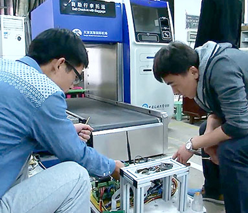 2009年,民航大學申報的自助行李托運系統成為中國民用航空局科技基金支持項目,它的誕生可謂生逢其時。當時國內已經推行旅客電子客票服務,但是還沒有自助行李托運系統,國際上也才剛剛興起。由民航大學機器人研究所所長高慶吉帶隊,羅其俊負責總體技術研發,21人師生組成的科研團隊通過前期研發,加上后期與天津航大航空設備有限公司(以下簡稱航大設備公司)一線人員進行產業化研究,于2011年完成原理樣機研制,通過項目驗收鑒定,達到國際先進水平,并獲得3項專利。