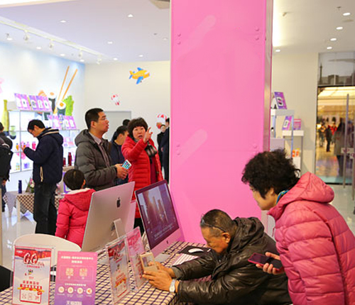 在天貓國際體驗中心,以往阿里巴巴天貓線上的商品擺放在店面中進行展示,消費者先體驗該商品,再通過掃描二維碼進行下單購物。