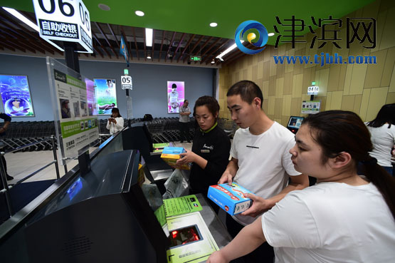 自助收銀到底有多快、多便捷?在天津空港SM廣場永輝超市收銀區,記者看到了幾臺類似ATM機的自助收銀機。只需點擊屏幕上開始購物,將采購的商品逐一放在感應區掃描條形碼,屏幕上就會出現商品名稱、件數和價格。掃碼完畢后點擊“支付”,出現手機支付、銀行卡支付和vip卡支付,點擊需要的支付方式。支付完畢后點擊打印小票,就完成了整個購物過程,3件商品的結賬僅用了一分鐘。