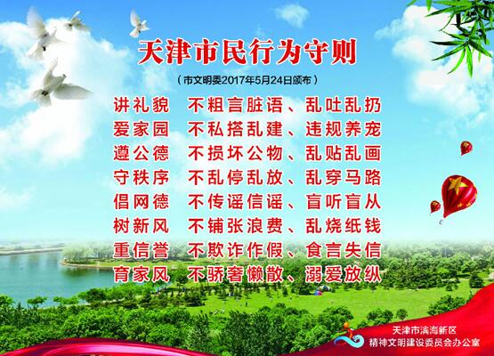 日前,經天津市文明委審定批準同意,《天津市民文明公約》《天津市民行為守則》(以下簡稱《公約》《守則》)頒布實施。