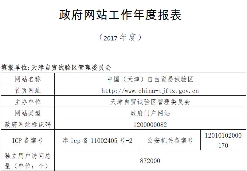 天津自貿試驗區網站工作年度報表(2017年度)